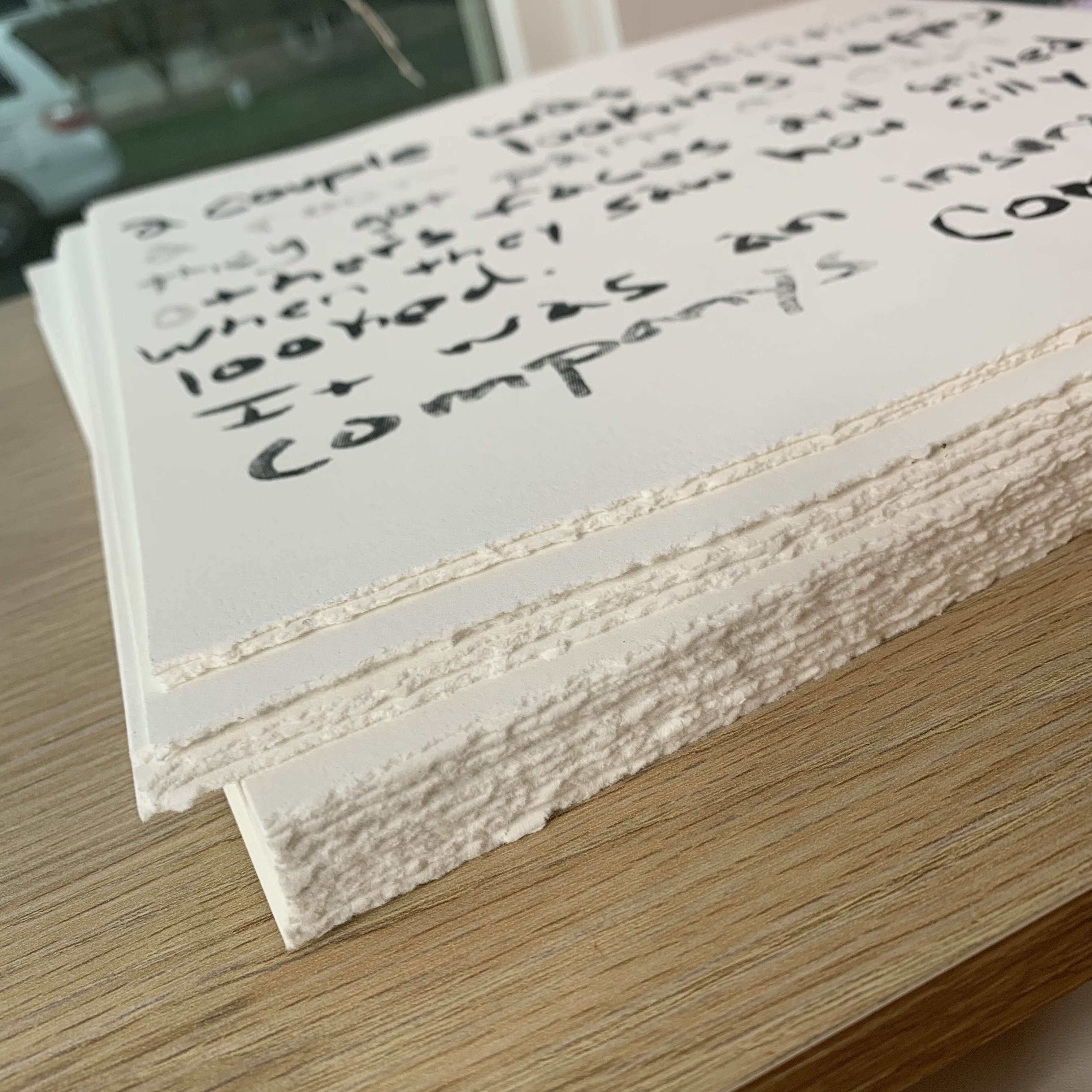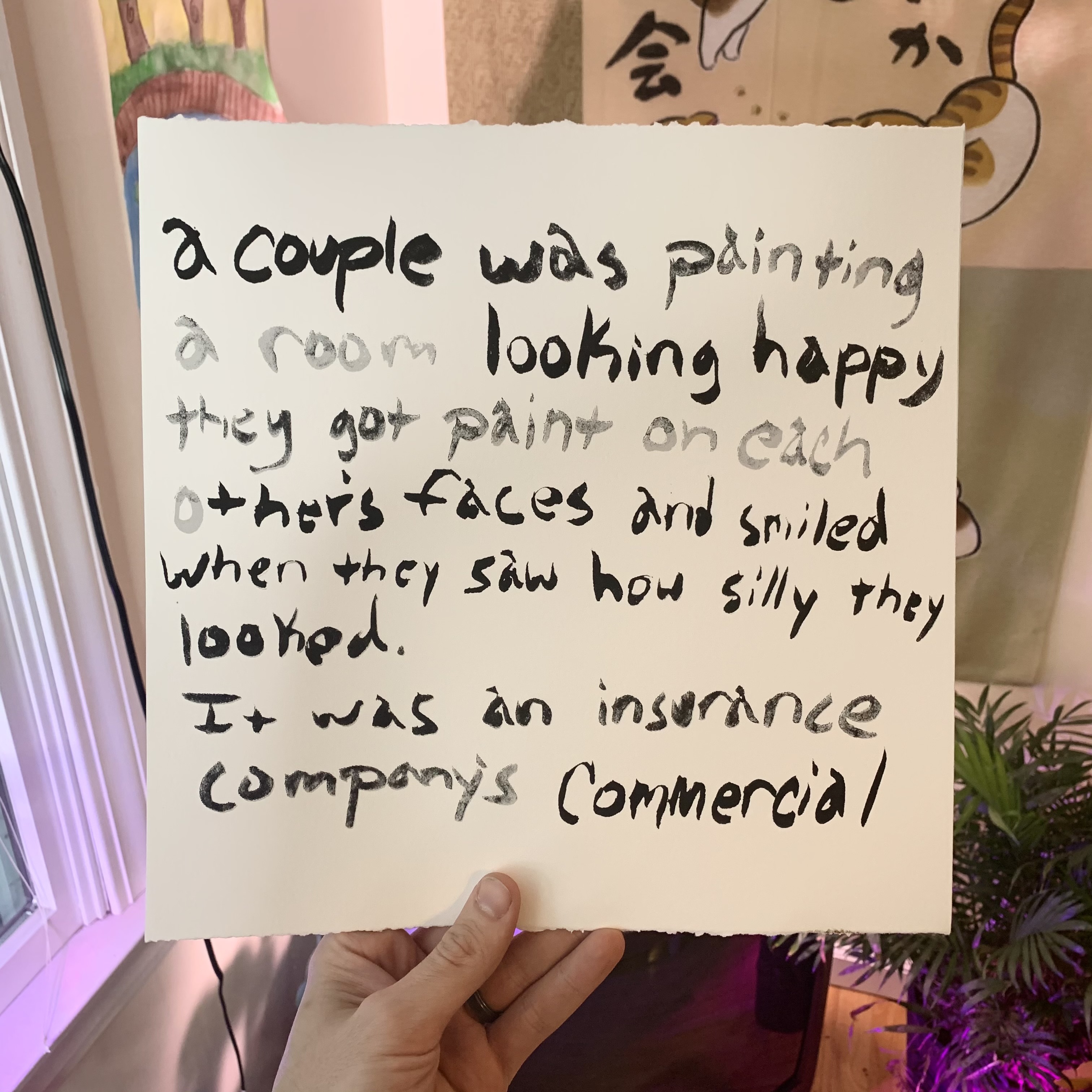One day I took my beautiful and inspiring (sources not cited) prose from paintbrush to paper. With the help of Zak at Four Finger Press in New Orleans, my unskillful brush work was masterfully screen printed onto 12x12 white 100gsm paper (THAT'S GOOD PAPER AND YOU'LL LOVE IT). The edges of this print are deckled and feathery... I didn't realize how much I like paper until now.